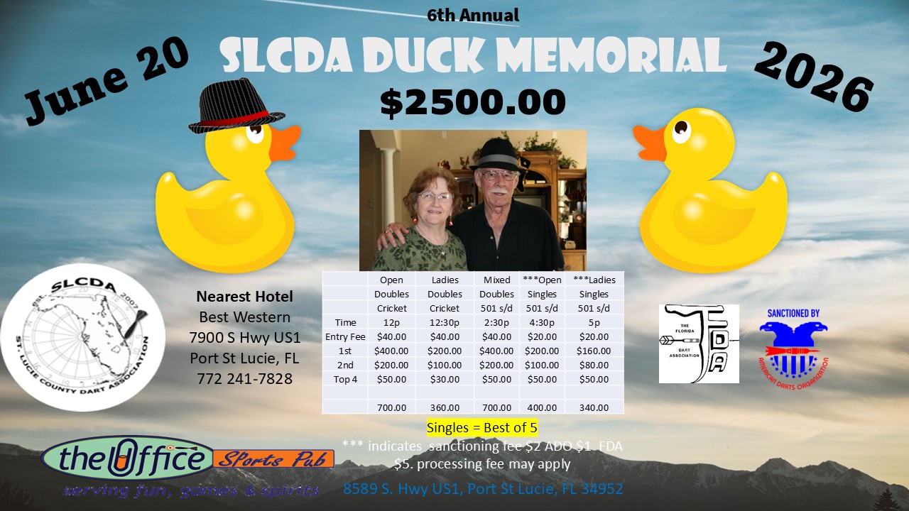 | Sanctioning Status: ✅ Approved! Date: 2026-06-20 thru 2026-06-20 Boards: 15 Address: 8589 S Hwy US 1 City: Port St. Lucie, FL 34952 Region: 4-5 Host Affiliation: FLA - Florida Dart Association Inc. Contact 1: Laura Lentoski Phone 1: (954) 214-2900 Email 1: click here to email WDF Ranked Event: not WDF ranked | ![]() | |